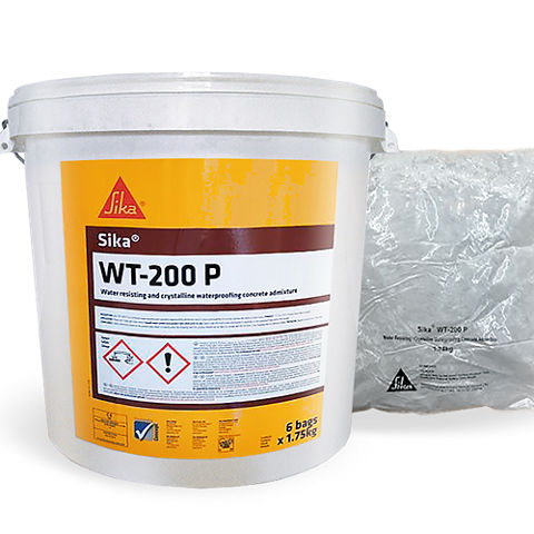 Sika® WT-200 P on yhdistetty veden tunkeutumista vastustava betonin lisäaine ja kiteytymiseen perustuva vesitiiviin betonin lisäaine. Tuotetta käytetään betonin permeabiliteetin (huokoisuuden) pienentämiseen ja luomaan kyvyn halkeilun korjautua itsestään.