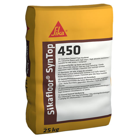 Sikafloor® SynTop-450 on pinnankovetin, joka sisältää mineraalirunkoaineita ja korundia, joilla on korkea kovuus.
