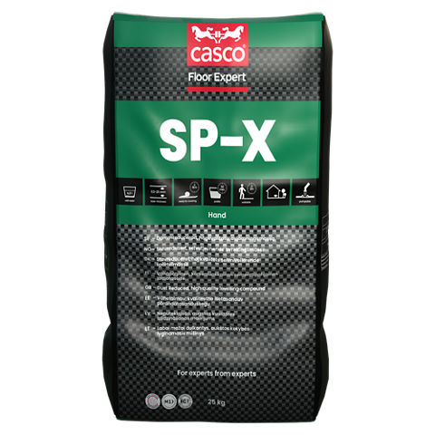 SP-X on vähäpölyinen, sementtipohjainen, itsesiliävä lattiatasoite. Kerrospaksuus 0,5–25 mm. Soveltuu useimmille sementtipohjaisille alustoille. Vain sisäkäyttöön.