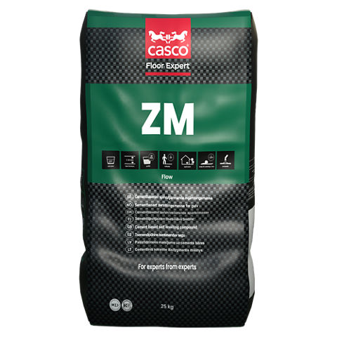 ZM on sementtipohjainen itsesiliävä lattiatasoite, kerrospaksuus 1–10 mm. Soveltuu useimmille sementtipohjaisille alustoille. Vain sisäkäyttöön.